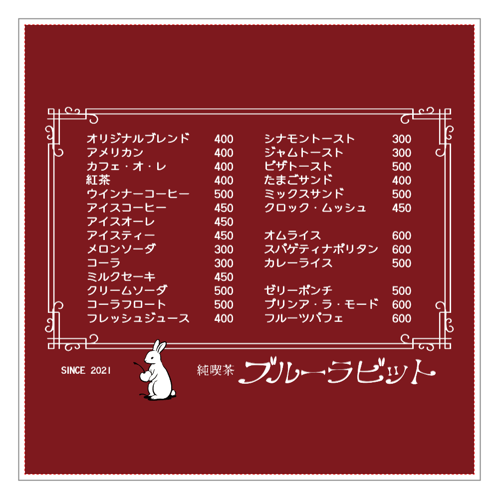 お品書き 三日月堂珈琲